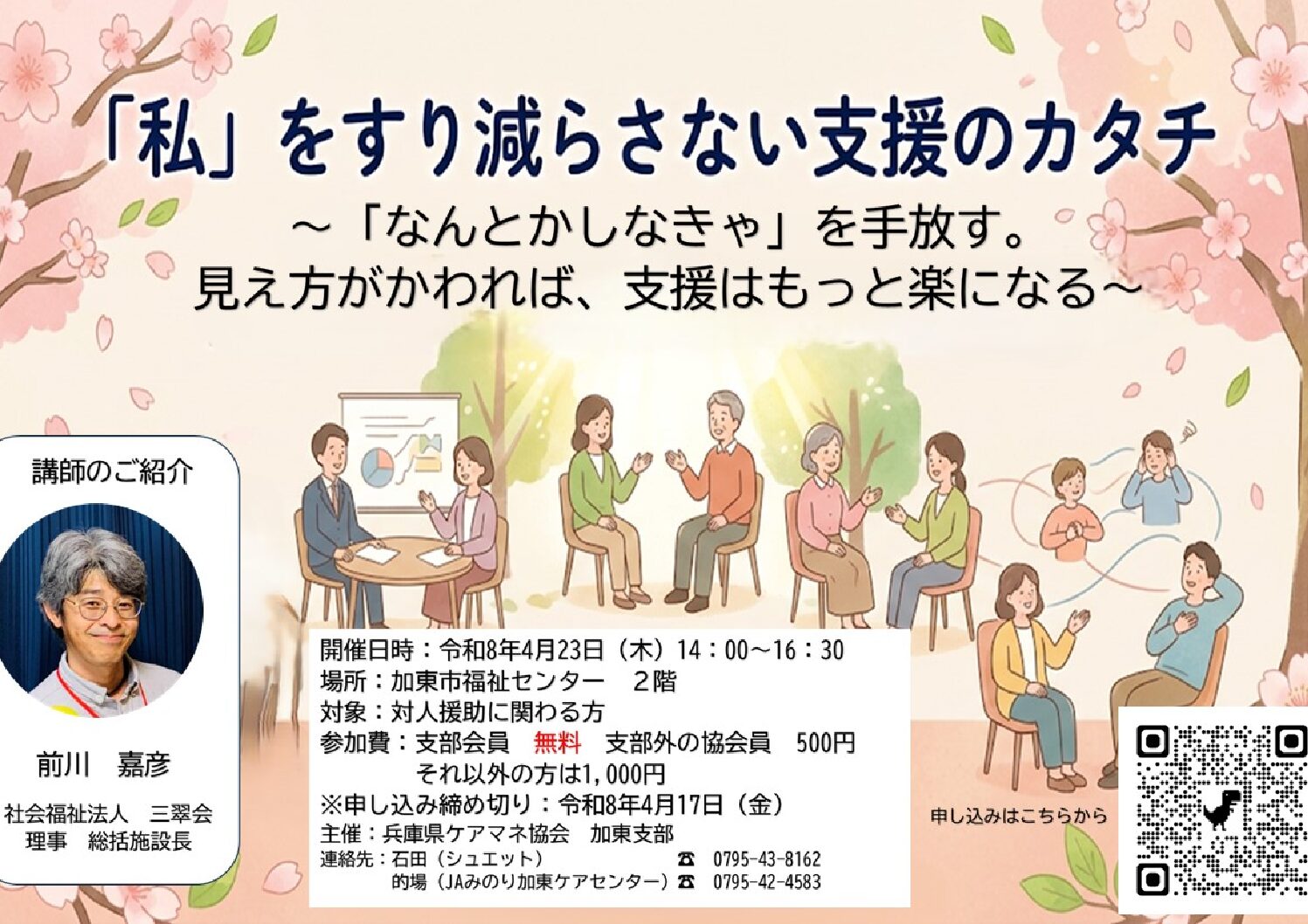 法定外研修 県協会主催 年別アーカイブ 2026年2025年2024年2023年 【D-2】令和8年度 倫理研修3部作【倫理・ハラスメント・コンプライアンス】第1弾 令和8年4月17日(金) 【D-2】令和8年度 倫理研修3部作【倫理・ハラスメント・コンプライアンス】第2弾 令和8年5月15日(金) 【D-2】令和8年度 倫理研修3部作【倫理・ハラスメント・コンプライアンス】第3弾 令和8年6月23日(火) 受講証明書のPDF出力について(PDF:336KB) 研修受講管理システムFAQ 支部主催 年別アーカイブ 2026年2025年2024年2023年 【C-1.5】認知症とともに生きる ディメンシア・ギフト 豊岡市 令和8年4月11日(土) 【B-2.5】「私」をすり減らさない支援のカタチ 加東市 令和8年4月23日(木) 他団体の研修情報 年別アーカイブ 2026年2025年2024年2023年 【B-4.5】令和8年度福祉専門職対象防災対応力向上研修 e-Learning令和8年4月1日(水)~9月30日(水) 【B-6.0】2026年度地域包括支援センター初任者研修 Zoom令和8年6月10日(水)