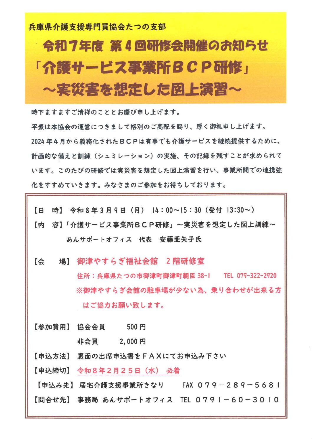 【D-1.5】令和7年度第4回たつの支部研修会 介護サービス事業所BCP研修